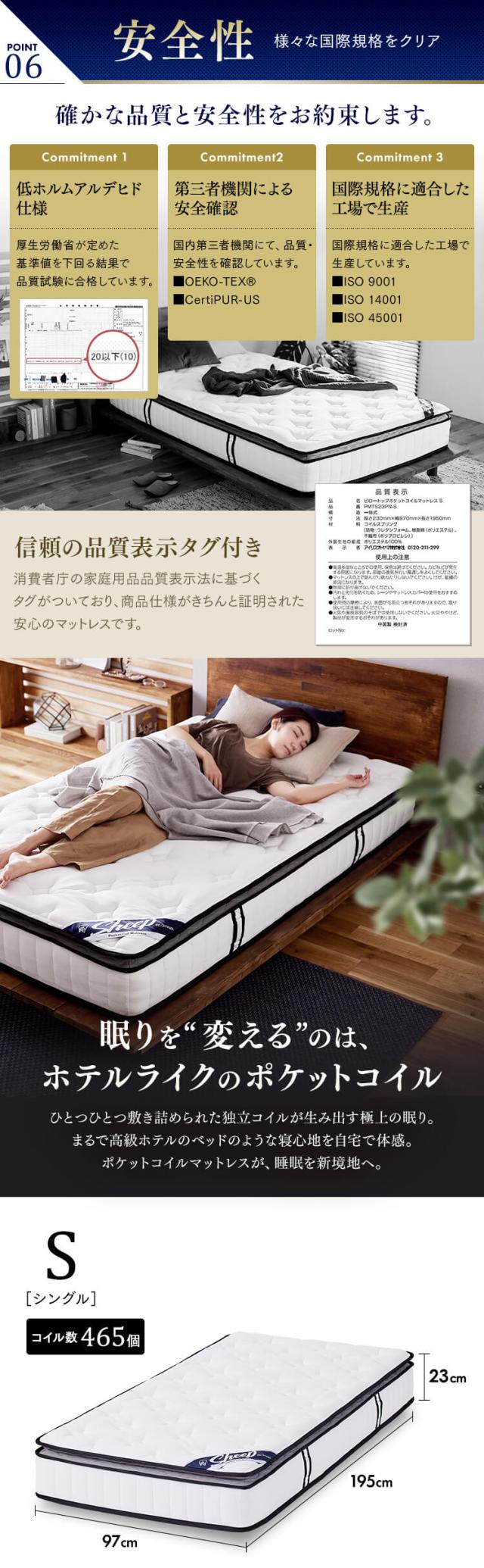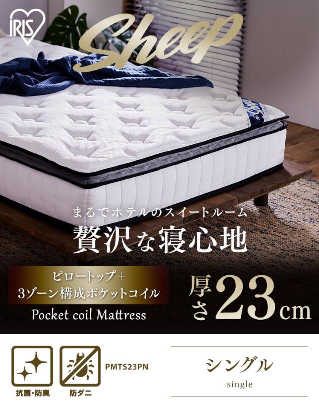 マットレス シングル S 快眠 PMTS23PN-S シングル ピロートップ ポケットコイルマットレス ホワイト マットレス ポケットコイル コイル マット ベッド 抗菌 防臭 睡眠 快眠 寝具 眠り アイリスオーヤマ 送料無料 【int】
