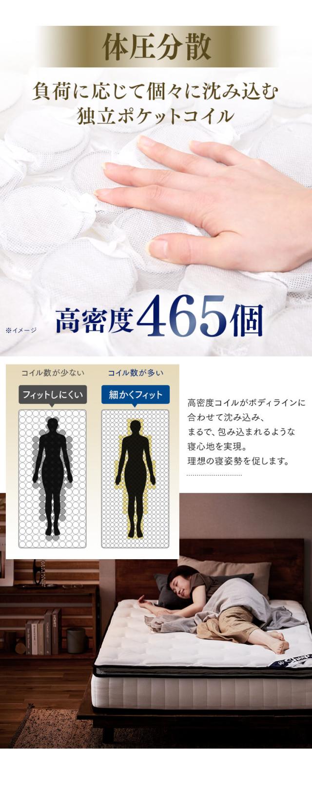 ピロートップと硬さの異なる2種類のポケットコイルが今までにないほ贅沢な寝心地を実現。