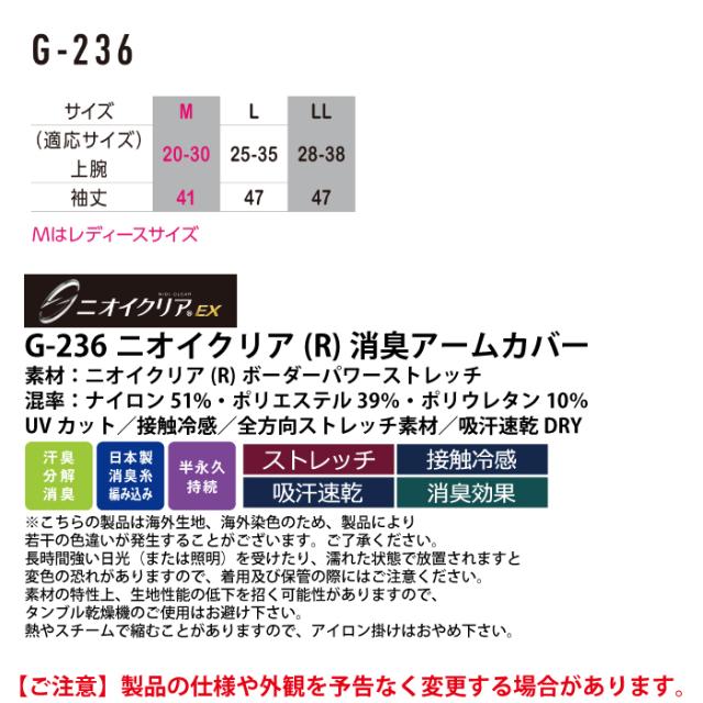作業用品 春夏用 コーコス G-236 ニオイクリア消臭アームカバー M-LL