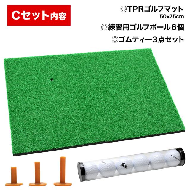 本格派 ゴルフ 練習 マット 素振り ゴルフマット スイング ドライバー アイアン 室内 屋外 人工芝 TPR 50×75cm ゴルフティー ゴルフボール Cセット