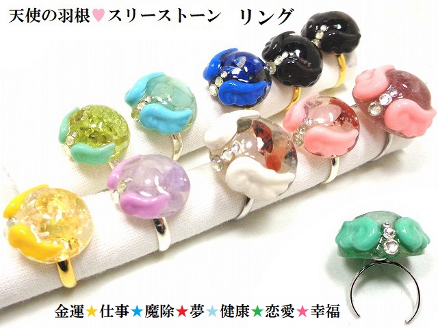 金運・幸福・幸運・恋愛・健康・魔除・厄除け・夢・魅力UP・異性を引き寄せる・短期間で願いが叶う・出逢い運UP★天使の羽根★スリーストーン★半球/リング/指輪★フリーサイズ★スワフスキー★パワーストーン★護符(霊符)