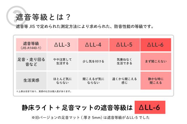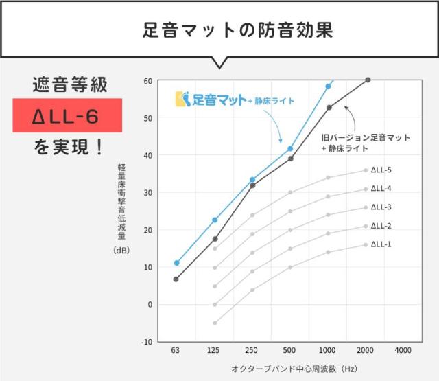 ・防音関連の性能:防音カーペット(静床ライト)と重ねた場合:軽量床衝撃音 ΔLL-6