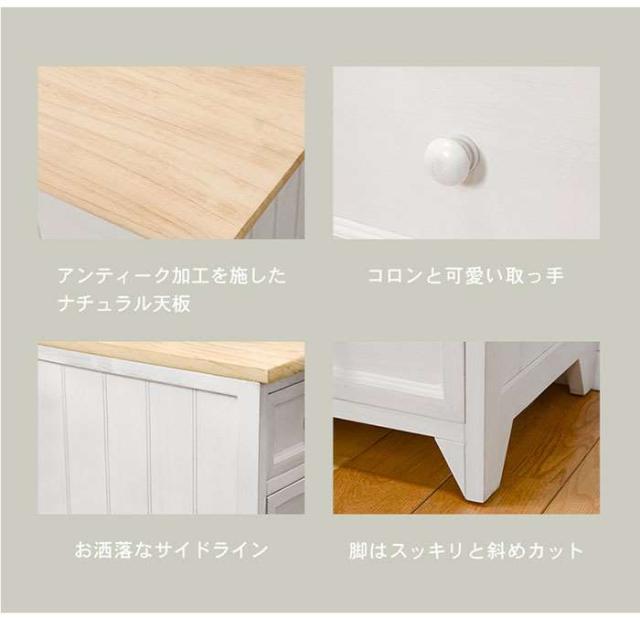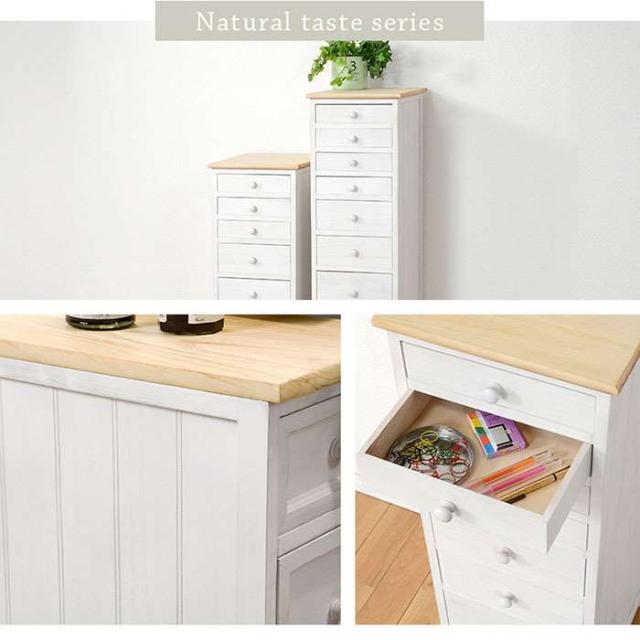 チェスト。シャビーホワイトの本体にアンティーク調ナチュラルな天板が映える、シンプルチェスト。・ 引出内寸(小):(約)幅23×奥行32×高さ4.5cm・ 引出内寸(中):(約)幅23×奥行32×高さ8.5cm・ 引出内寸(大):(約)幅23×奥行32×高さ12.5cm。