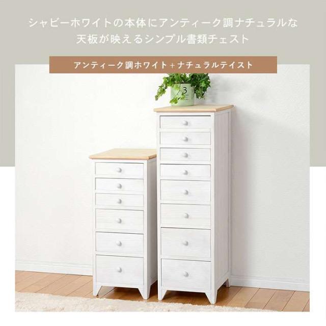 北海道・沖縄・離島配送不可 代引不可 チェスト アンティークホワイト 幅31cm 引き出し6段 高さ71.5cm シャビー アンティーク調 ナチュラル 収納 タンス HAGIHARA 2101655300