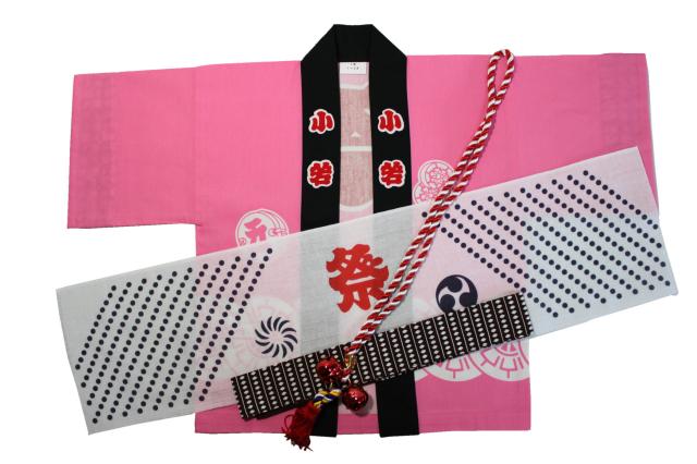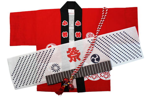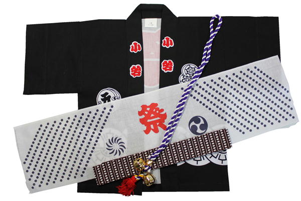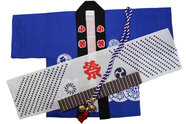 源氏車柄 子供伴天セット(豆絞り、帯、たすき鈴付き)サイズ:1号/90cm〜3号/100cm