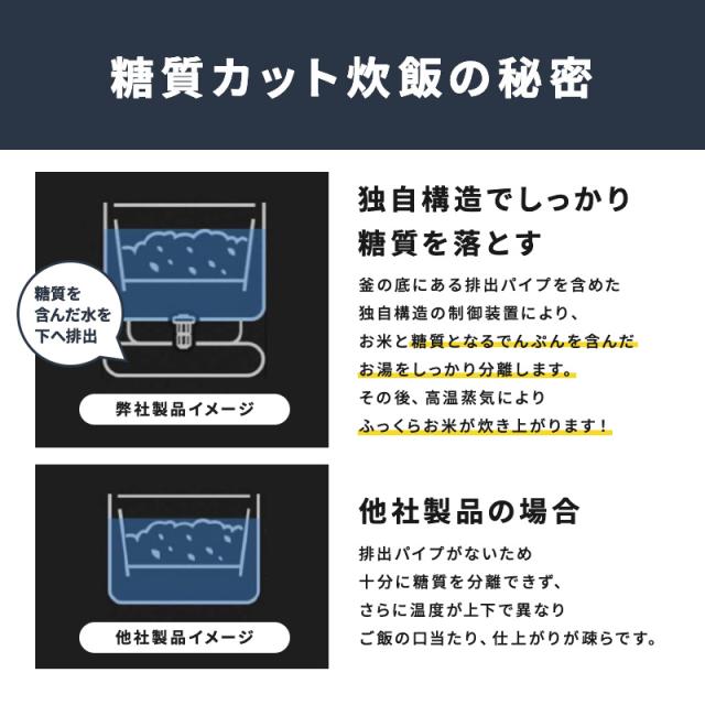 - お米が好きで食べ過ぎるので糖質カット炊飯器が欲しくてしばらく探してまして。今まで機能性がイマイチだったりデザインがイマイチだったり、糖質カットも2〜3割くらいという商品ばかりで買いあぐねておりました。...