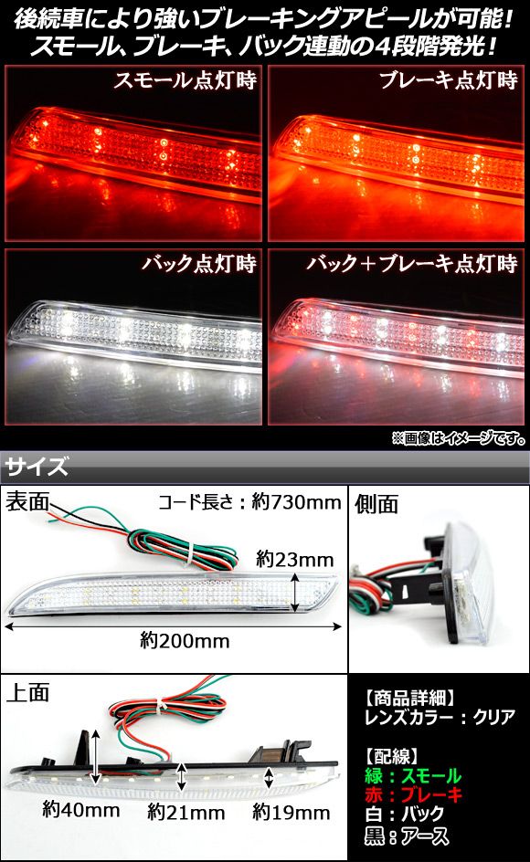 LEDリフレクター ホンダ ステップワゴン RG1/RG2/RG3/RG4 2005年〜2009年 バック連動タイプ クリアレンズ 入数:1セット(左右) AP-REFBC-STW-CL AP 本田技研工業 LED リフレクター リフレクターランプ レフレクターランプ レフレクター 反射板 stepwgn リア リヤ リアー リヤー rear 背後 後方 ランプ ライト テール テイル バック ブレーキ スモール 反射器 尾灯 クリア クリアー クリヤー 白 ホワイト white automobile motorcar オートモービル モーターカー カー 車 自動車 車両