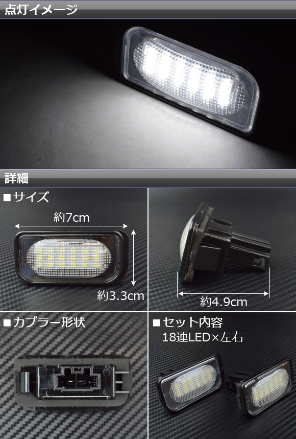 AP LEDライセンスランプ 18連 AP-LC-BENZ-01 入数:1セット(左右) メルセデス・ベンツ W203,C240,C230,C55 AMG,C320,C350,C280,C43,C32 AMG