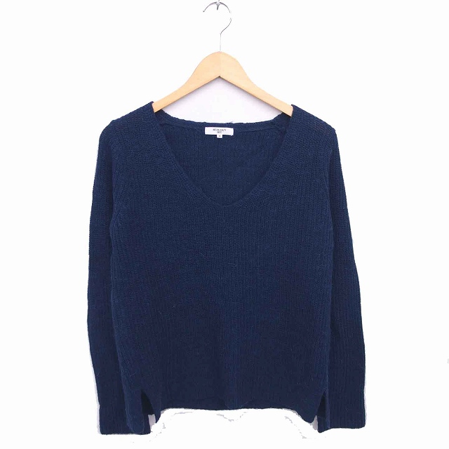 【中古】ナチュラルビューティーベーシック ニット セーター Vネック 無地 シンプル ウール混 長袖 M ネイビー 紺