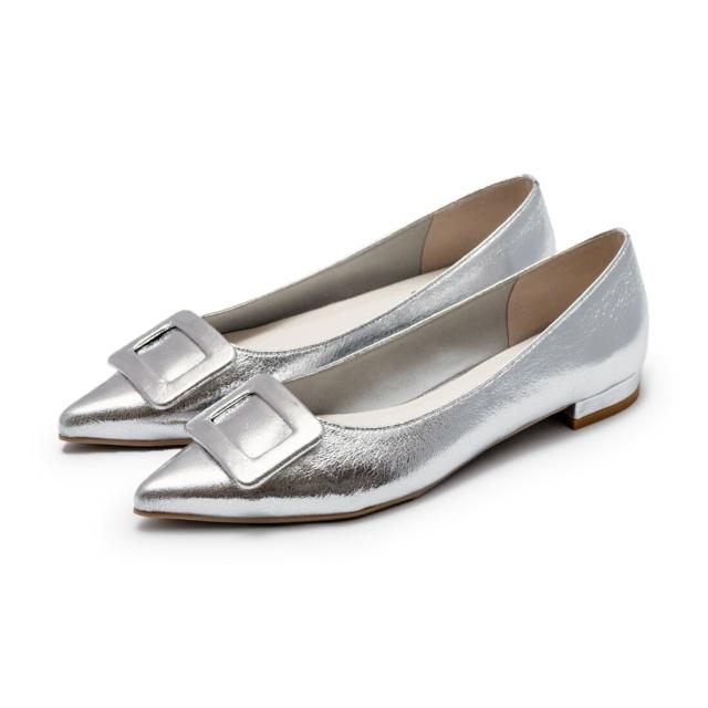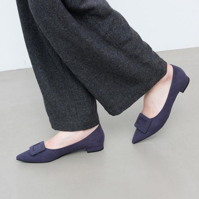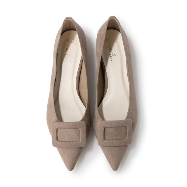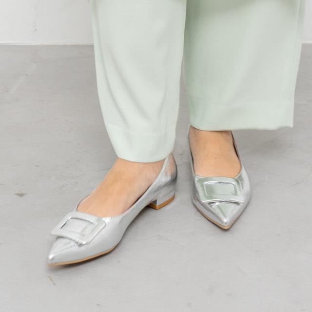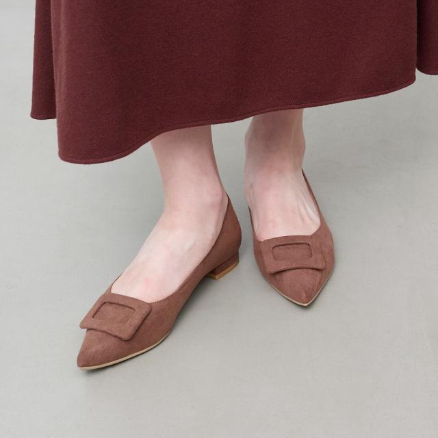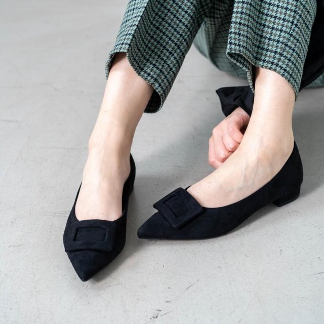 人気のバックルフラットパンプス。