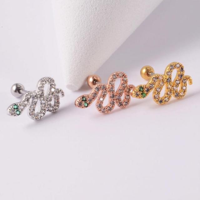 [ボディピアス 20G] クリスタルスネイク ストレートバーベル ヘリックスピアス 20ゲージ へび ヘビ スネーク 蛇 ボディーピアス メンズ レディース プレゼント シルバー 銀色 金色 ゴールド ピンクゴールド ジルコニア 耳 イヤーロブ 軟骨 男性 女性 彼氏 彼女 ステンレス