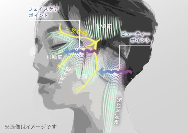 ビューティーポイント:フェイスケアのパフォーマンスをサポート。首もとから胸鎖乳突筋を刺激。