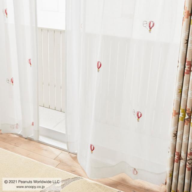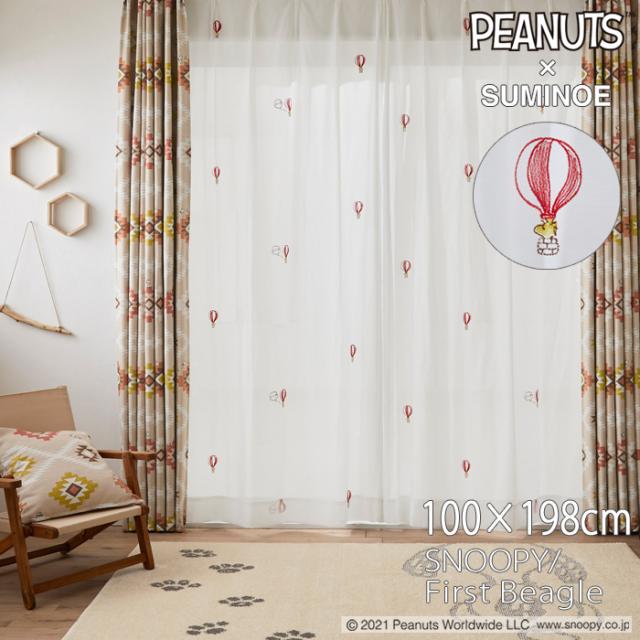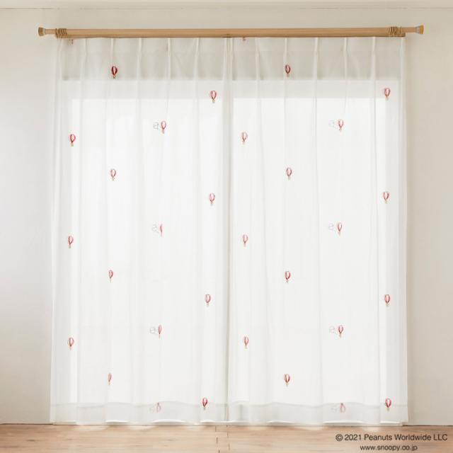スヌーピー レースカーテン 100×198cm ピーナッツ/バルーントリップ 1枚入り 洗える SNOOPY PEANUTS 住之江 日本製 P1049 RD