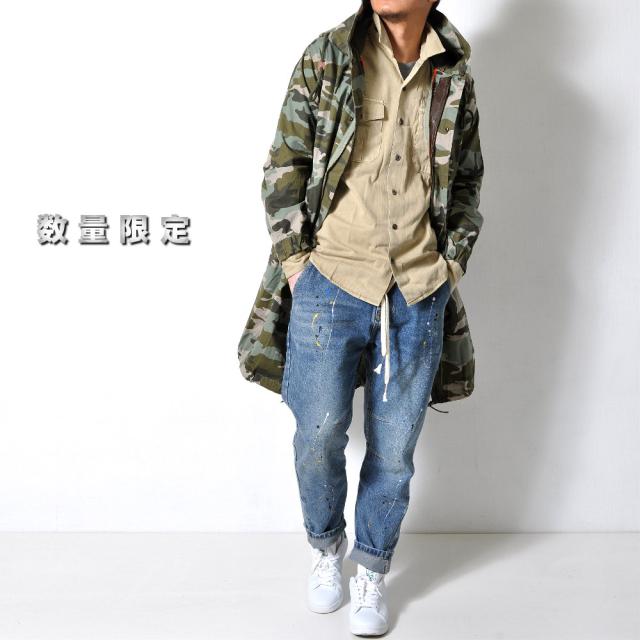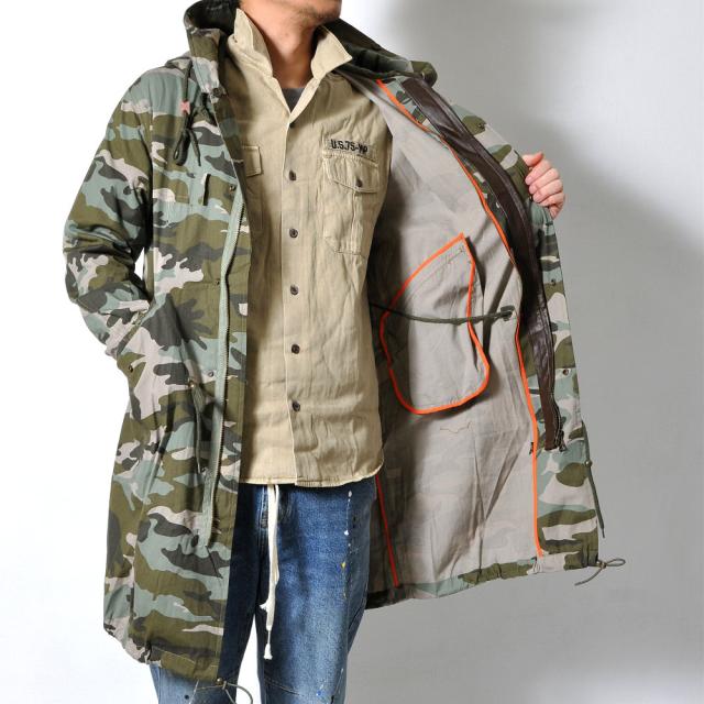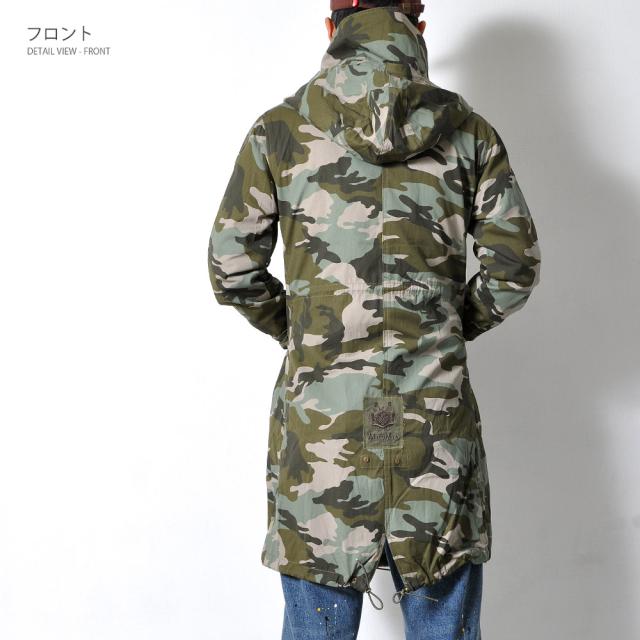数量限定 迷彩コート ミディアム丈 メンズ カモフラ ジャケット ミリタリー スプリングコート モッズコート#T531