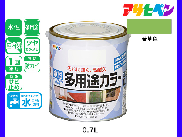 アサヒペン 水性多用途カラー 0.7L 若草色 塗料 ペンキ 屋内外 1回塗り 耐久性 外壁 木部 鉄部 サビ止め 防カビ 無臭