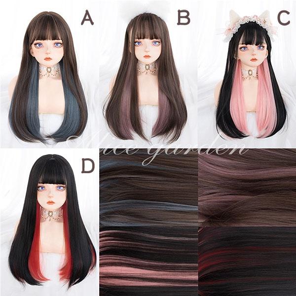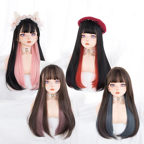 ウィッグ フルウィッグ インナーカラー メッシュ ストレート ロング ロングウィッグ ブラウン ブラック レッド ピンク ブルー 前髪あり 原宿風 ふんわり前髪 ぱっつん前髪 茶髪 コスプレ 可愛い コスチューム 仮装 大人用 普段使い 文化祭 イベント 学園祭 dp087n1n1c9