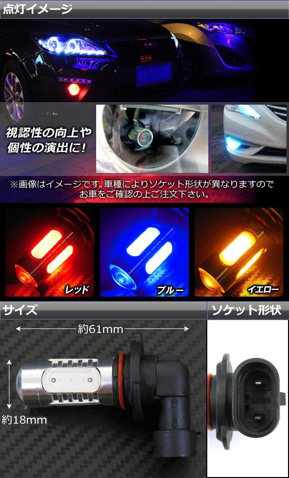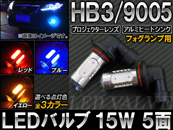 AP LEDバルブ HB3/9005 15W 12V 選べる3カラー AP-LB004 入数:2個 カラー: レッド ブルー イエロー
