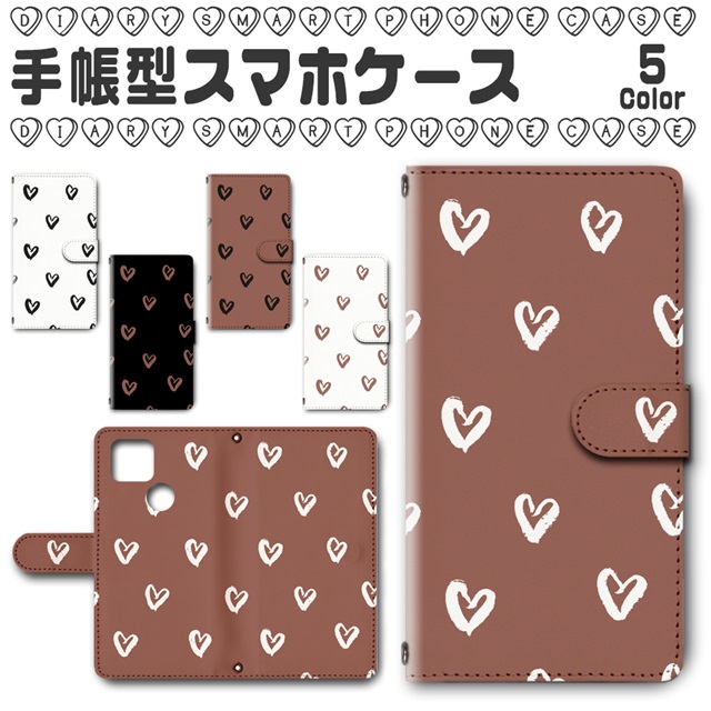 スマホケース スマホ ケース スマホカバー スマホ カバー 手帳型 Google Pixel 5a (5G) 対応 送料無料 ハート ブラウン 茶色 シンプル / dc-386