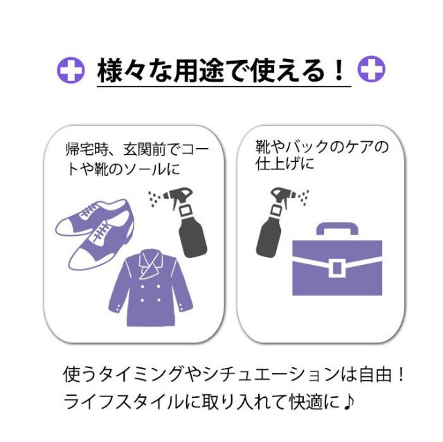 皮革製品の除菌と抗菌に効果を発揮する『レザーキュア 除菌・抗菌ミスト300』を入荷致しました。皮革にとってシミや色落ちの原因となるアルコールを配合していない新しいタイプの除菌・抗菌スプレーです。有効成分が素材に付着することで、菌を除去し増殖を防ぎます。アルコールフリーなので、銀付き革や起毛革の靴やバッグ、ウエアにも安心してご使用いただけます。アルコールを配合しない代わりに、SIAA認証の高い安全性と環境負荷物質を含まないことが証明された抗菌剤を配合。抗菌効果は約1週間持続します。週に1回の定期的な使用が効果的です。ナイロンや布地などのファブリック製品にも問題なくご使用いただけます。