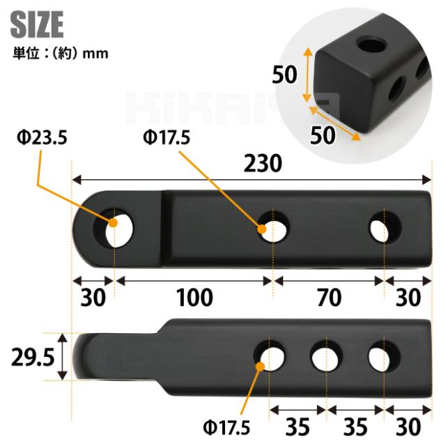 ヒッチレシーバー 5t ブラック ヒッチメンバー ヒッチシャックルブラケット 最大荷重5000kg アルミ アルマイト アルミニウム マット KIKAIYA