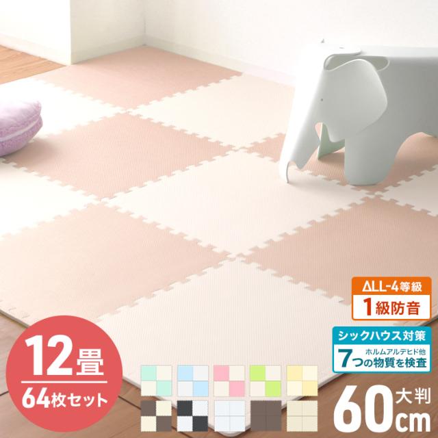 ジョイントマット 大判 12畳 64枚 60cm ノンホル サイドパーツ付 床暖房対応 おしゃれ PE ジョイント 赤ちゃん フロアマット プレイマット 防音 断熱 北欧 キッズマット キッズ マット ベビーマット 送料無料 洗える カーペット ベビー ペット ペット用