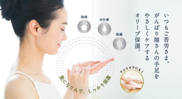 オリーブ果実油・オリーブ果実エキス配合で、お肌にやさしいしっとりとした手足用のクリームです。クリームが皮膜となって、水や洗剤からお肌を守り潤いを保ちます。無着色・無香料。