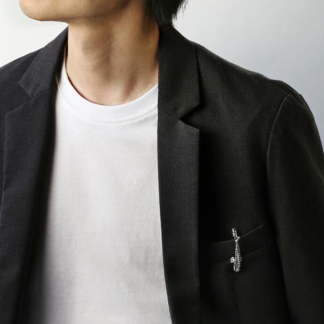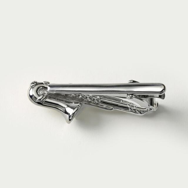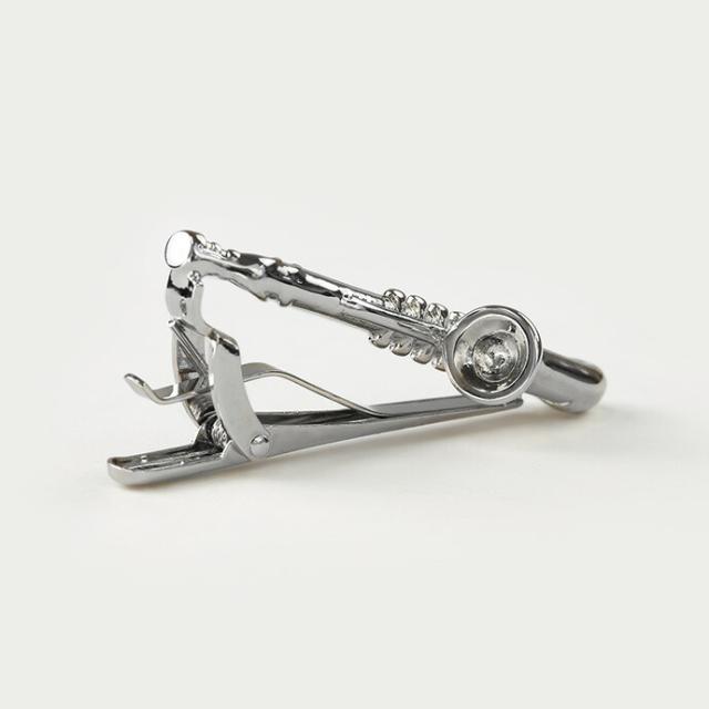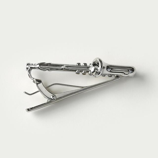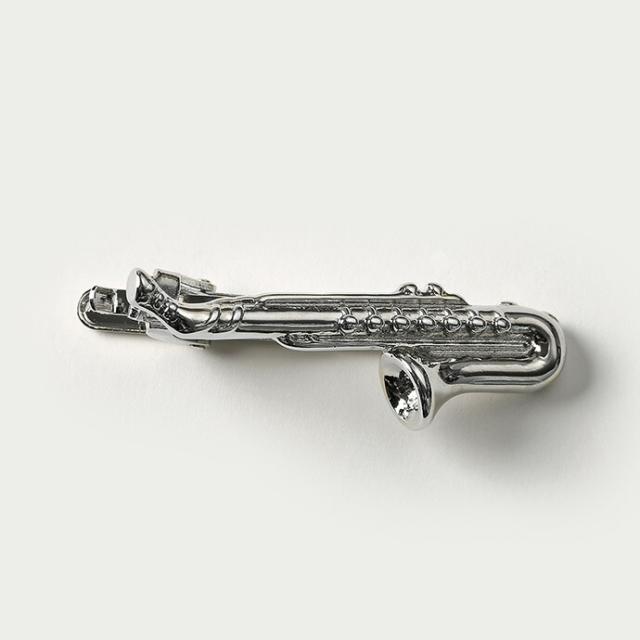 楽器のサックスの形をしたユニークなネクタイピン。一般的なワニ口式クリップなので着脱も簡単です。音楽やジャズが好きな方へのちょっとしたプレゼントに◎。ネクタイを留めるだけではなく、ジャケットの胸ポケットやカバンに付けるなど、マルチクリップとして使うのもオススメです。