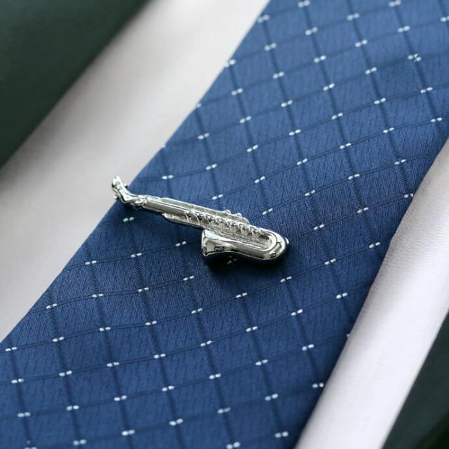 ネクタイピン 送料無料 おしゃれ おもしろ 楽器 サックス ジャズ 音楽 シルバー クリップ タイピン タイバー ブロンズ製 シンプル ビジネス フォーマル 結婚式 Binich 20代 30代 40代 50代 プレゼント 男性用 アクセサリー baetc-5312