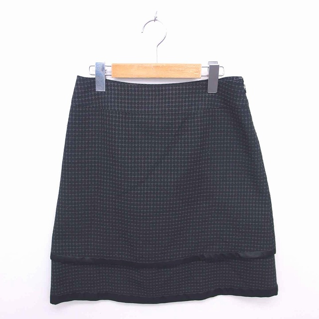 【中古】オフオン ofuon 台形 スカート ミニ 総柄 サイドジップ 薄手 38 ブラック チャコールグレー 黒 /TT45