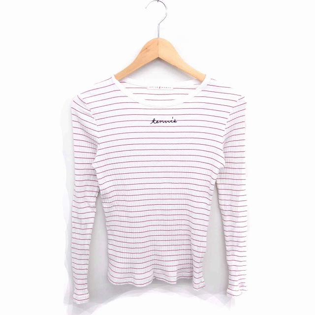 【中古】チャイルドウーマン CHILD WOMAN カットソー ニット ボーダー 丸首 薄手 英字刺繍 長袖 F ホワイト レッド
