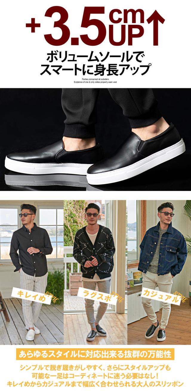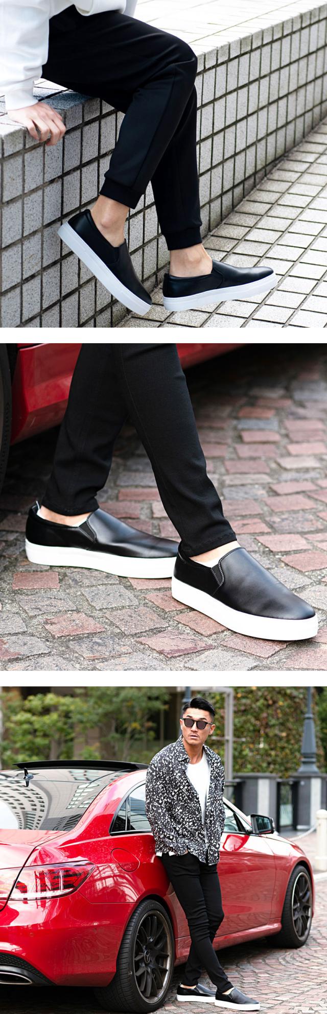 スリッポン メンズ スニーカー ブランド 大人 厚底 白 黒 靴 クツ くつ シューズ おしゃれ カジュアル ストリート きれいめ ローカット ブラック ホワイト シンプル 25cm 25.5cm 26cm 26.5cm 27cm 27.5cm CavariA 身長アップ 20代 30代 40代 メンズファッション [CACON22-01]