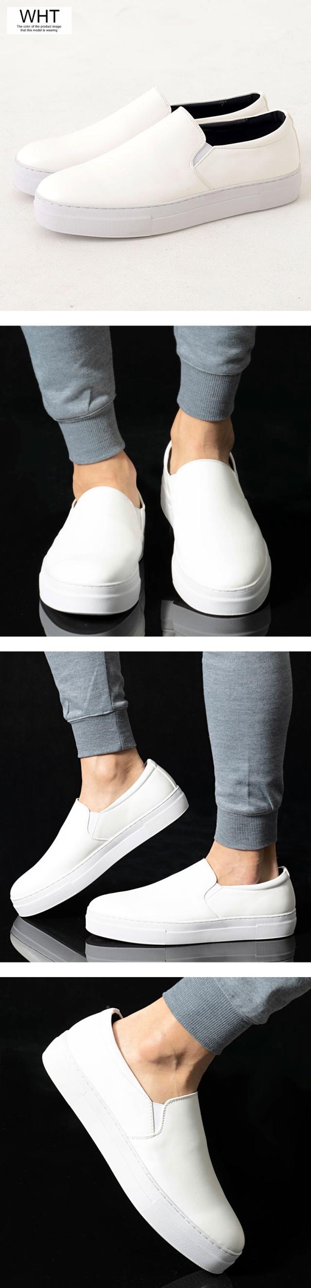 スリッポン メンズ スニーカー 厚底 白 黒 靴 シューズ おしゃれ カジュアル ストリート系 きれいめ ローカット PUレザー フェイクレザー 25.0 25.5 26.0 26.5 27.0 27.5 CavariA キャバリア 身長アップ 盛る 春 夏 秋 冬配送について