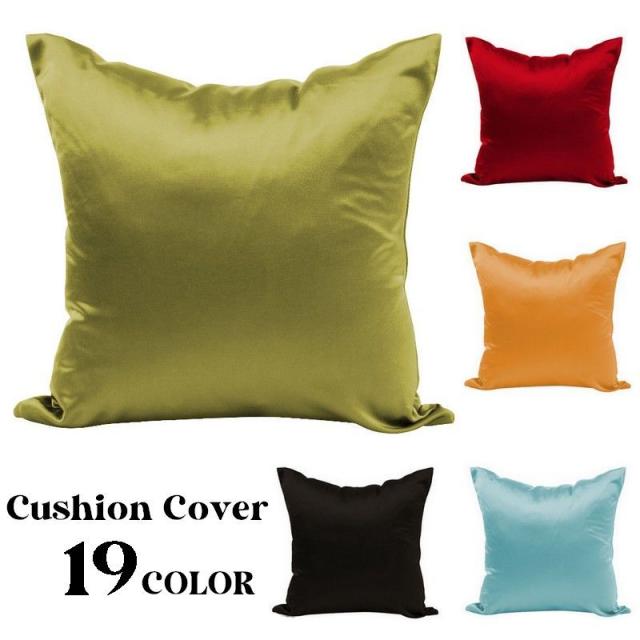 クッションカバー 正方形 45×45cm 単品 座布団カバー 枕カバー サテン調 角型 四角形 スクエア型 シンプル 無地 ソリ