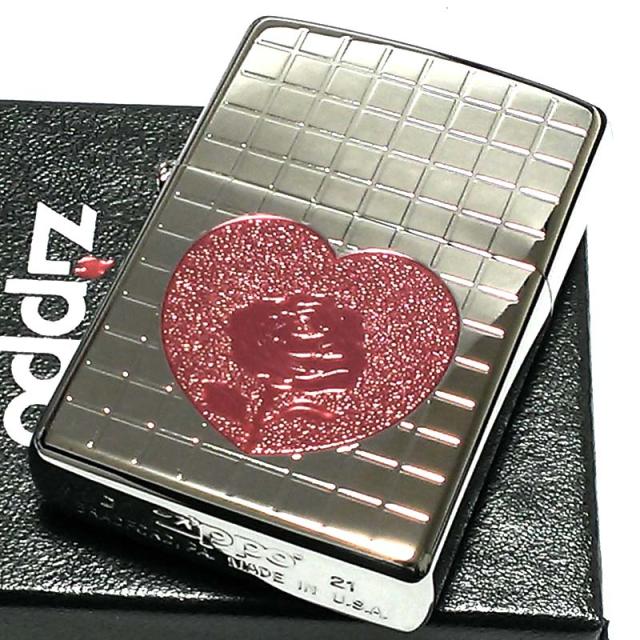 ZIPPO ライター ハート ローズ ジッポ シルバー ミラー仕上げ 銀 薔薇 チタンコーティング かわいい おしゃれ レディース 女性