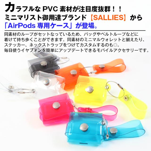 SALLIES サリーズ エアポッズ インスタ映え SNS インスタ インスタグラマー愛用 アウトドア 軽い ビビットカラー ブラック クリア ブルー ピンク オレンジ イエロー 会社 職場 クリア 透明 メンズ レディース おしゃれ 人気 カラフル ファッション ポップ かわいい 軽量 ビニール シンプル 個性 カラー デザイン 通勤 通学