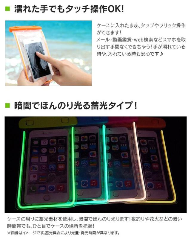【蛍光防水ポーチ】お風呂やプールでスマホを守る!iPhoneやGALAXYSがスムーズに入る防水ケース 防水バッグ