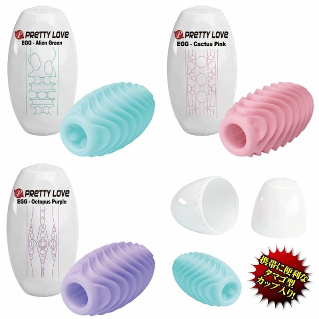 繰り返し使える プリティラブ エッグ 3個セット カクタスピンク・オクトパスパープル・エイリアングリーン|リバーシブルホール たまご型 ローション付 送料無料