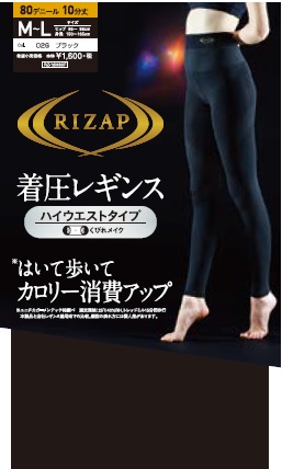 カロリー消費アップレギンス10分丈 ハイウエスト設計 広幅ストレッチウエストバンド(RIZAPロゴ入り) ムーブコントロール設計 マチ付 レッグ部コンプレッション設計(レッグ部段階着用圧設計) |