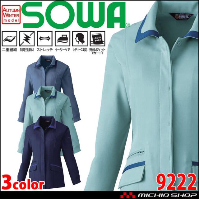 SOWA 桑和 制電性 イージーケア ストレッチレディース長袖スモック 9222 作業服 作業着 秋冬