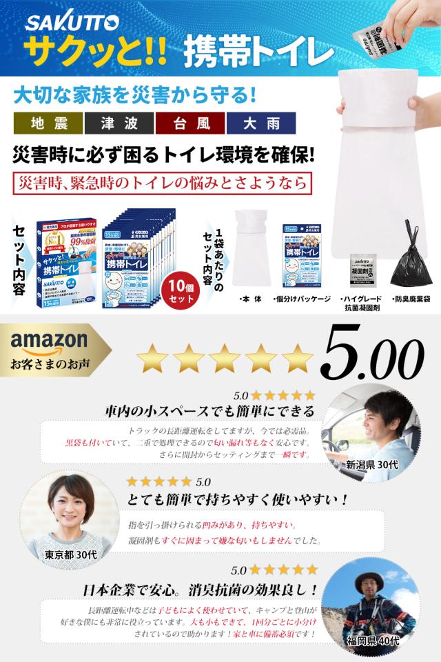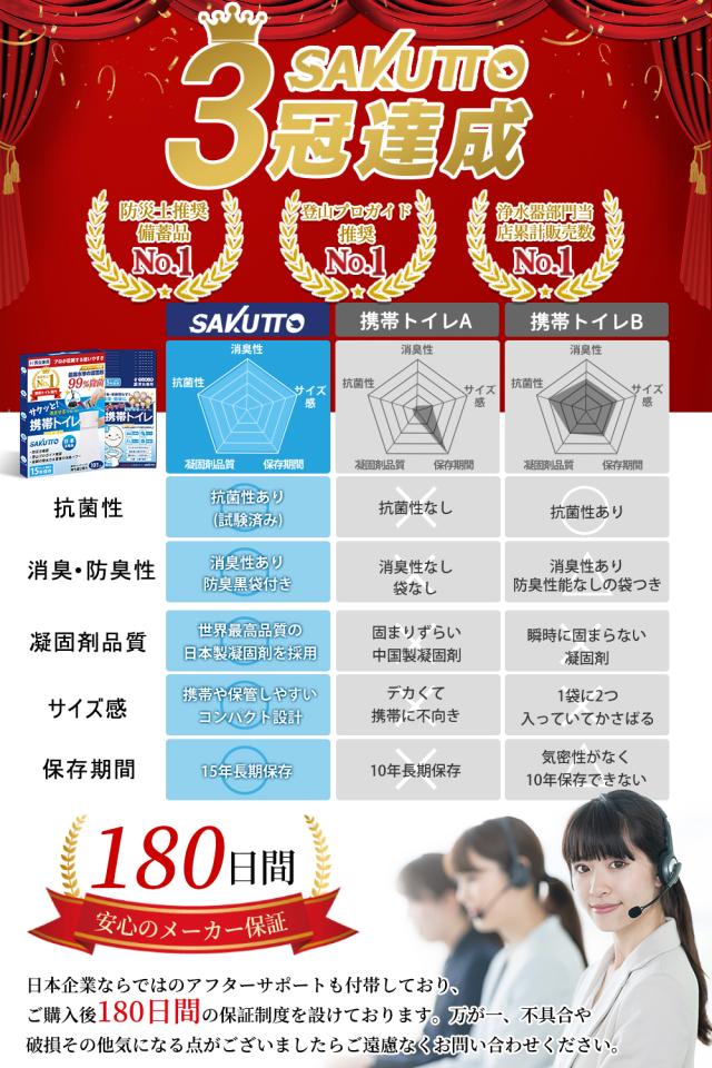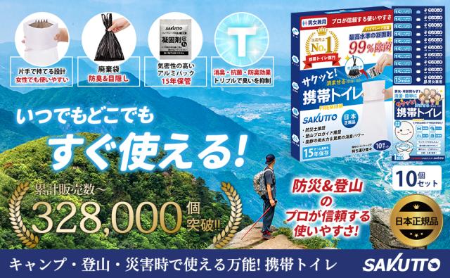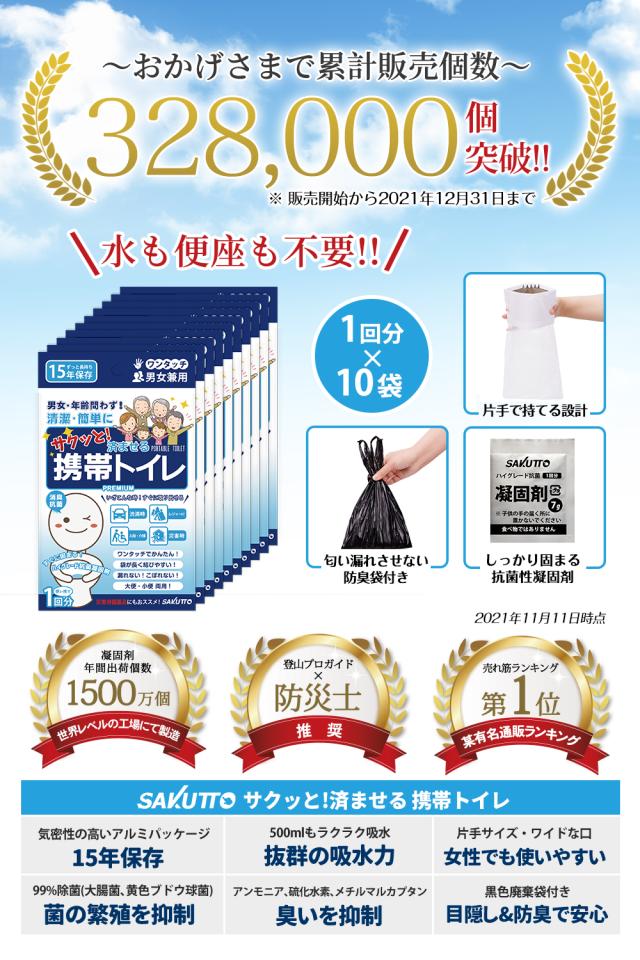 ◆ SAKUTTOの携帯トイレ!! おかげさまで3冠を達成し,累計販売個数328,000個突破しました!!