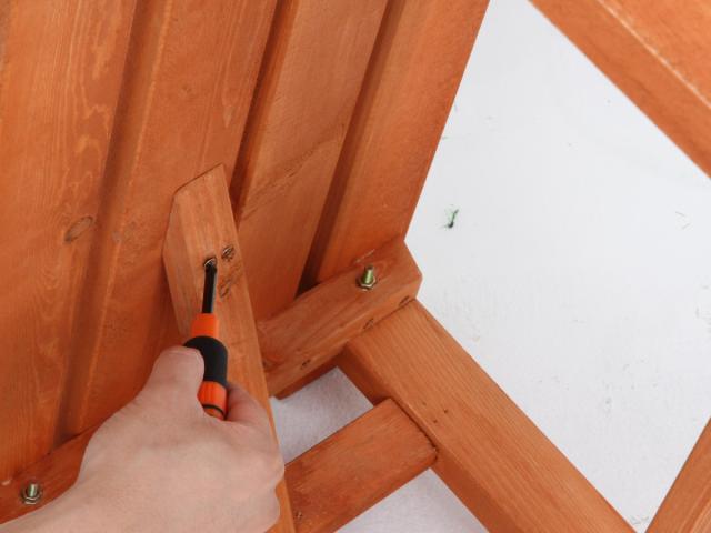 付属のボルトとネジでしっかりと脚や座面を固定します。