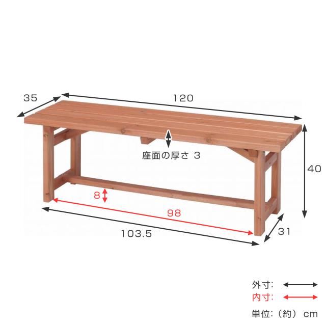 | サイズ | 約 幅120×奥行35×高さ40(cm) 座面の厚み:約3cm |