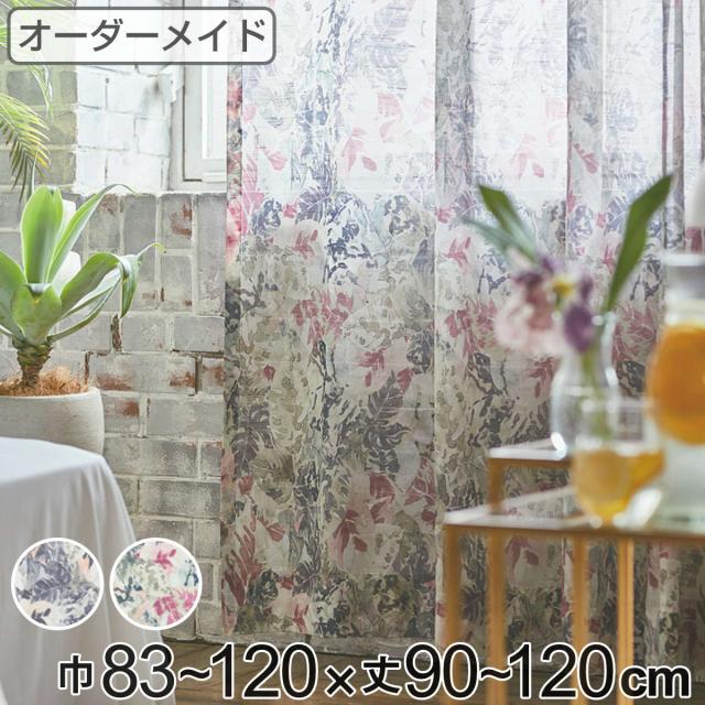 レースカーテン オーダーカーテン ボタニカナウ 1.5倍ヒダ 巾83〜120×丈161〜180cm ( オーダー サイズオーダー オーダーメイド カーテン レース 2つ山 1cm単位 おしゃれ 防炎 洗濯 可能 洗える 窓 出窓 日本製 リーフ柄 )