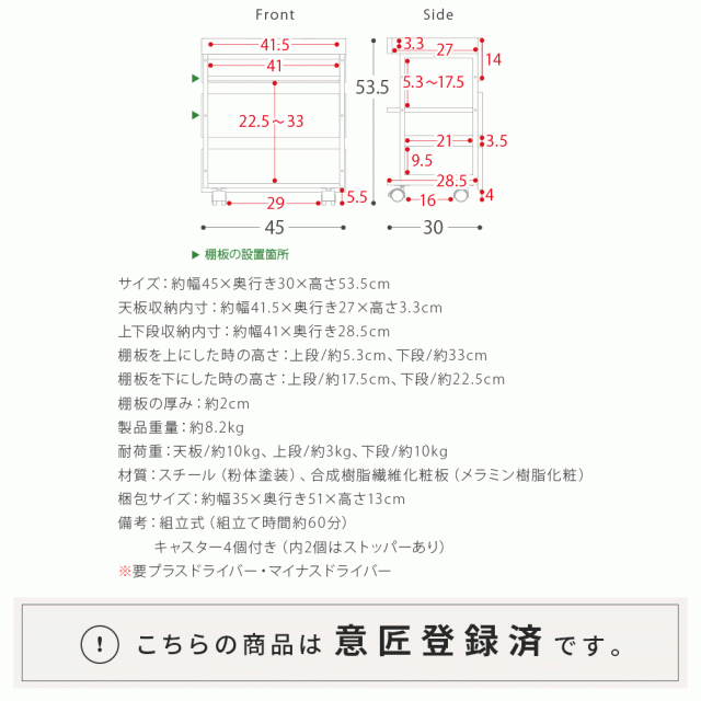 サイドワゴン キャスター付き サイドデスク おしゃれ 北欧 デスクワゴン デスク 収納 A4サイズ ワゴン デスク下 キッチンワゴン スリム キッチン収納 ファイルラック サイドラック