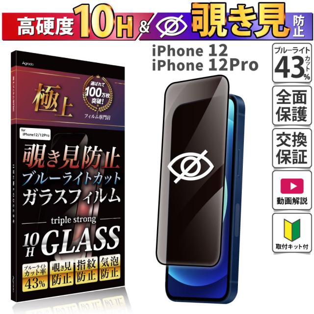 iPhone 12 / 12 Pro ガラスフィルム 覗き見防止 ブルーライトカット かんたん 安心 プライバシー 全面保護 スマホフィルム 強化ガラス のぞき見防止 保証 アイフォン アイホン おまけ付き 防水ケース ポイント消化 除き見
