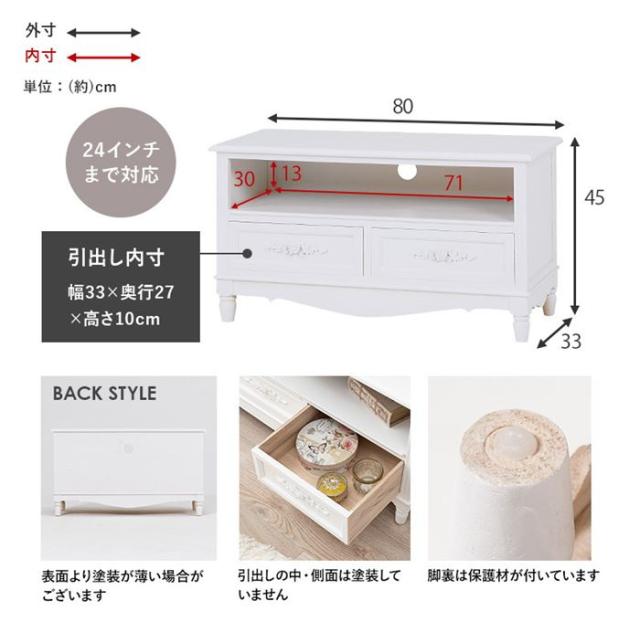 テレビ台 TVボード アンティーク調家具 幅80cm 24vまで 引き出し収納付き 白 ホワイト 完成品