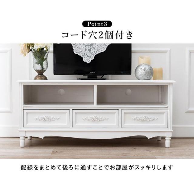 テレビ台 TVボード アンティーク調家具 幅105cm 42vまで 引き出し収納付き 白 ホワイト 完成品