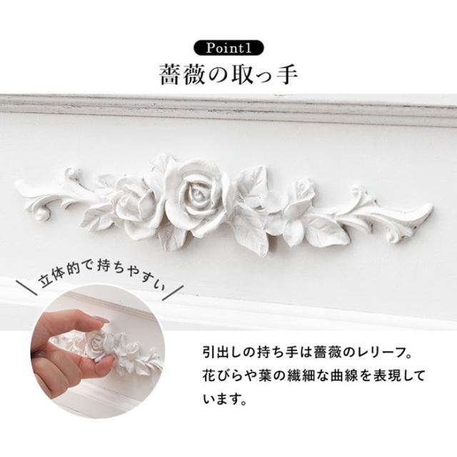 ●薔薇の取っ手、引き出しの持ち手はバラのお洒落なバラの形のレリーフになっています。