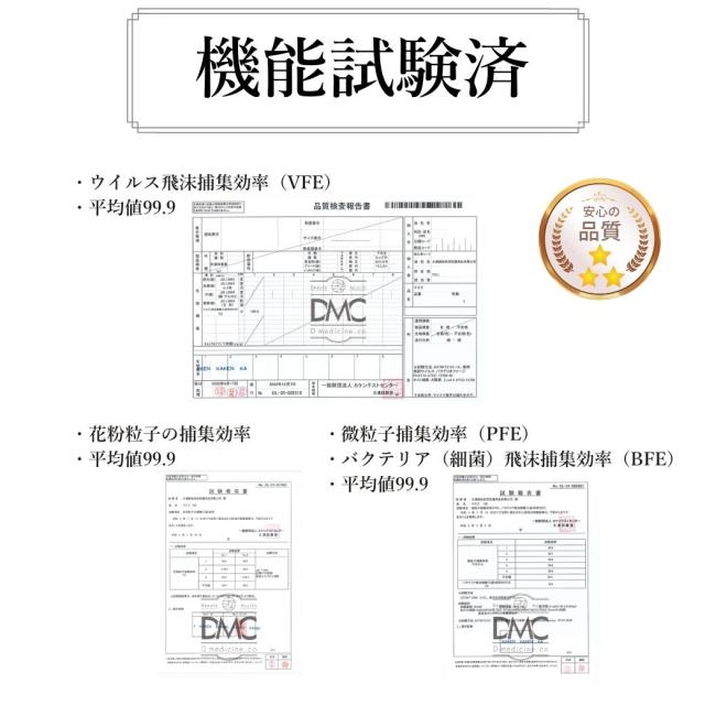 | 材質 | 本体/ポリプロピレン 耳ひも/ポリウレタン、ポリステル ノーズフィッター/ポリエチレン |