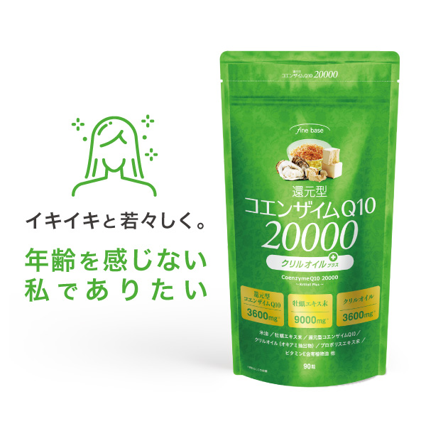 高吸収 還元型 finebase コエンザイムQ10 20000 (90粒入) クリルオイル ビタミン カキエキス プロポリス 免疫力 サプリ 【送料無料】 日本製 オメガ3 EPA DHA アスタキサンチン 高配合 コエンザイム q10 サプリメント